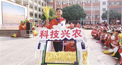 广西河池市金城江区实验小学校园举行2021年“希望之星”生产劳动趣味运动会,引导和鼓励学生们从小崇德、益智、健体、尚美、乐劳。
