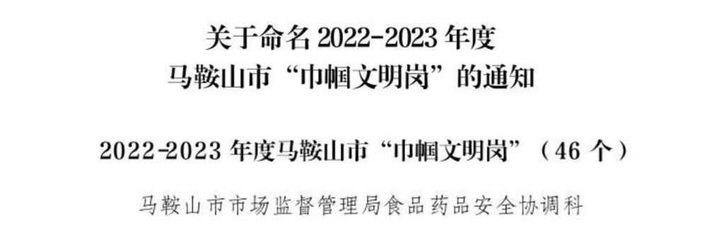 2022-2023年度马鞍山市“巾帼文明岗”称号 图片来源:马鞍山市市场监督管局