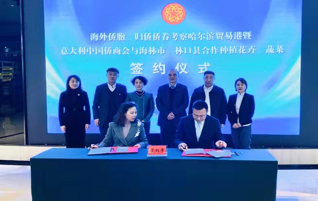 据了解,本次签约是黑龙江省侨联搭台、企业唱戏,助力龙江发展所取得的又一成果。仪式上,意大利中国侨商会常务副会长王文艳与海林市蔬菜种植基地负责人张玉祥签署了双方合作种植蔬菜协议,与牡丹江市林口镇党委书记葛建军签署了合作种植荷兰郁金香花卉协议。