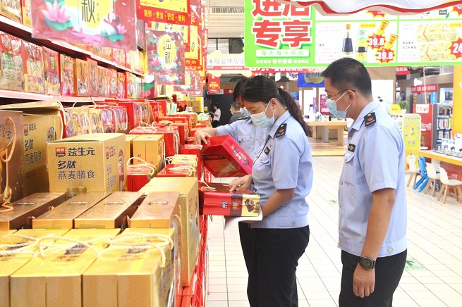突出节日消费量大的月饼、肉制品、乳制品、酒类及进口冷链食品等重点品种,围绕城乡结合部、旅游景区、校园及周边、车站等重点区域,对商场超市、集贸市场、餐饮服务单位、食品生产加工企业等重点场所的食品安全开展专项检查,排查安全隐患,严查违法行为。增加节日重点食品的抽检批次和频次,并做好不合格产品核查处置工作。9月份,已出动执法人员1100余人次,检查食品生产经营单位620余家,年度累计抽检食品4930批次。