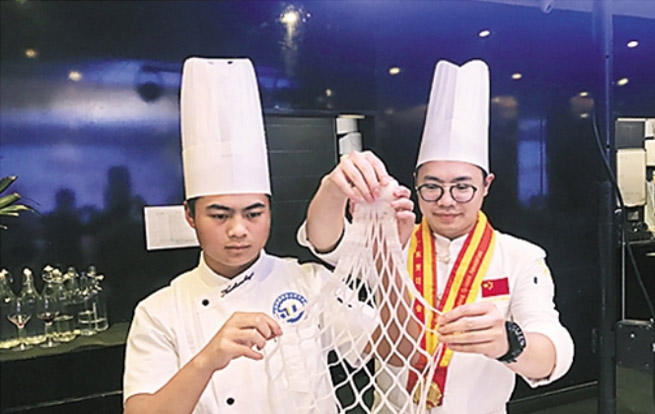 其中,“气球上切菜”令观看者惊叹不已:厨师蒙住双眼,在气球上将土豆片切成可穿过针孔的细丝。英国前国际发展部国务大臣麦克·贝茨勋爵一边赞叹,一边掏出手机录下全过程。