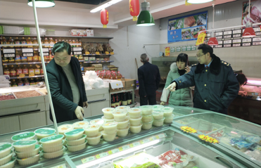 在农贸市场、小作坊等食品生产经营单位,执法人员检查年货物资来源是否合法,有否检验检疫合格证明,是否存在超范围、超剂量非法添加现象,有无过期变质食品,确保消费者购买到放心的年货。