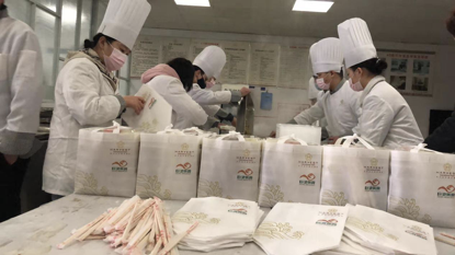 身处此次疫情中心,该公司对所有餐品的制作严加要求,确保每个环节的严谨,保证食材新鲜安全,制餐送餐人员必须佩戴口罩,每天测量体温。