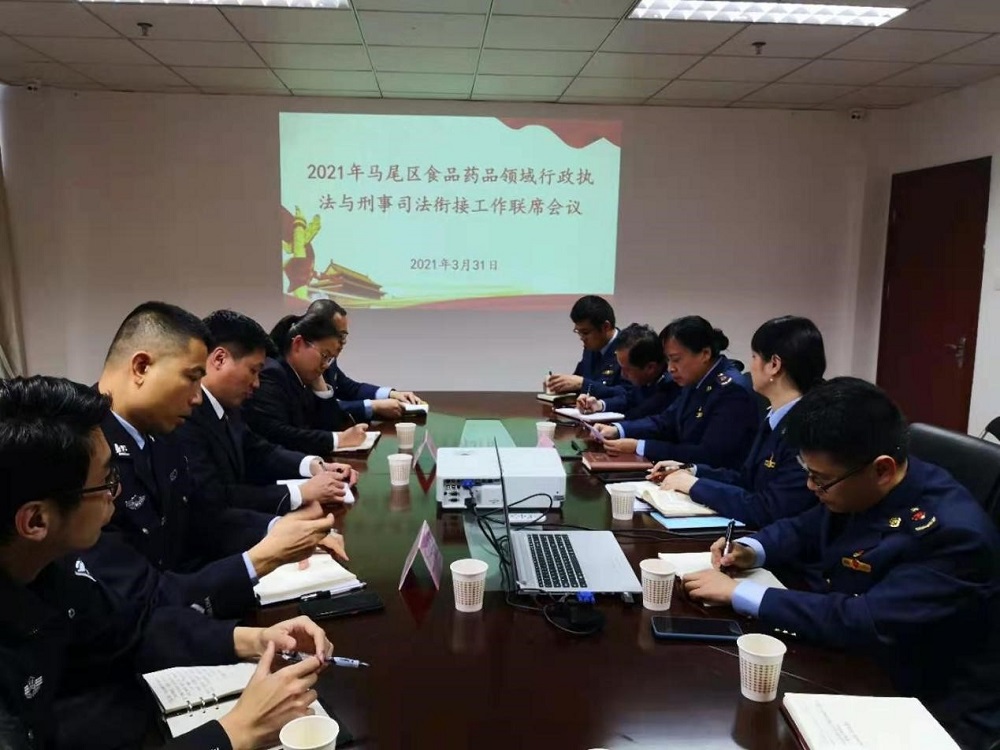 会上,马尾区市场监管局副局长郑峰首先通报了马尾区2020年至2021年第一季度食品药品领域行政执法与刑事司法衔接工作开展情况;随后,与会人员以交流探讨的形式,梳理在食品药品领域行政执法与刑事司法衔接工作中遇到的困难和问题,理清思路、理顺关系,在两法衔接工作问题上达成统一认识。