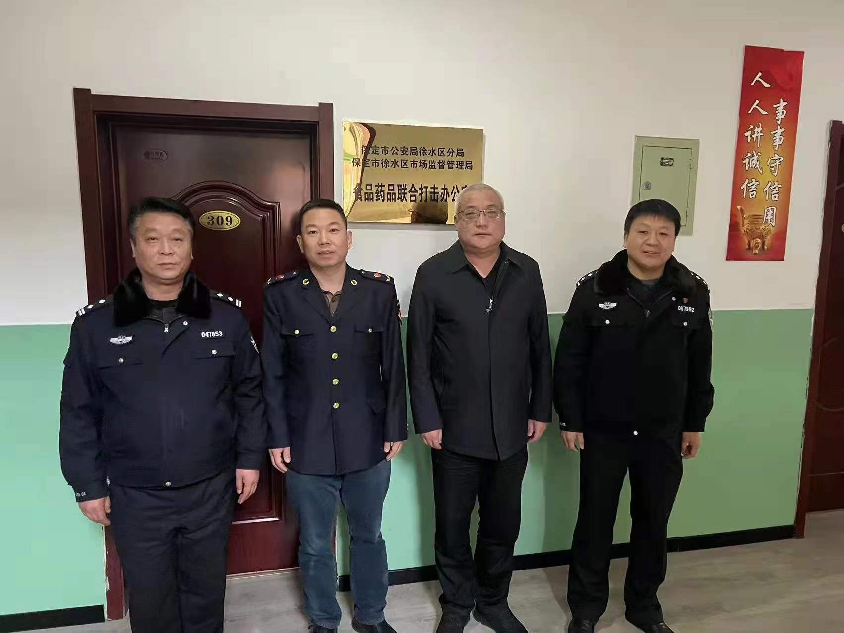 当前,危害食品、药品安全违法案件频发,为维护人民群众的最大利益,实现食品药品行政执法与刑事司法的无缝对接,徐水区市场监管局结合工作实际,与保定市公安局徐水区分局沟通协商,共同设立“食品药品联合打击办公室”。双方将借“食品药品联合打击办公室”成立之机,保持严厉打击食品药品违法行为的高压态势,深挖制假线索,切实保障人民群众的饮食用药安全。