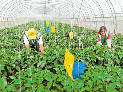 “最多时一天能摘5万多公斤彩椒,一公斤彩椒的价钱相当于好几公斤大白菜价格。”贾铁斌说,315个大棚年产蔬菜1500吨以上,产品不仅销往北京、上海等10多个城市,还远销俄罗斯等多个国家。