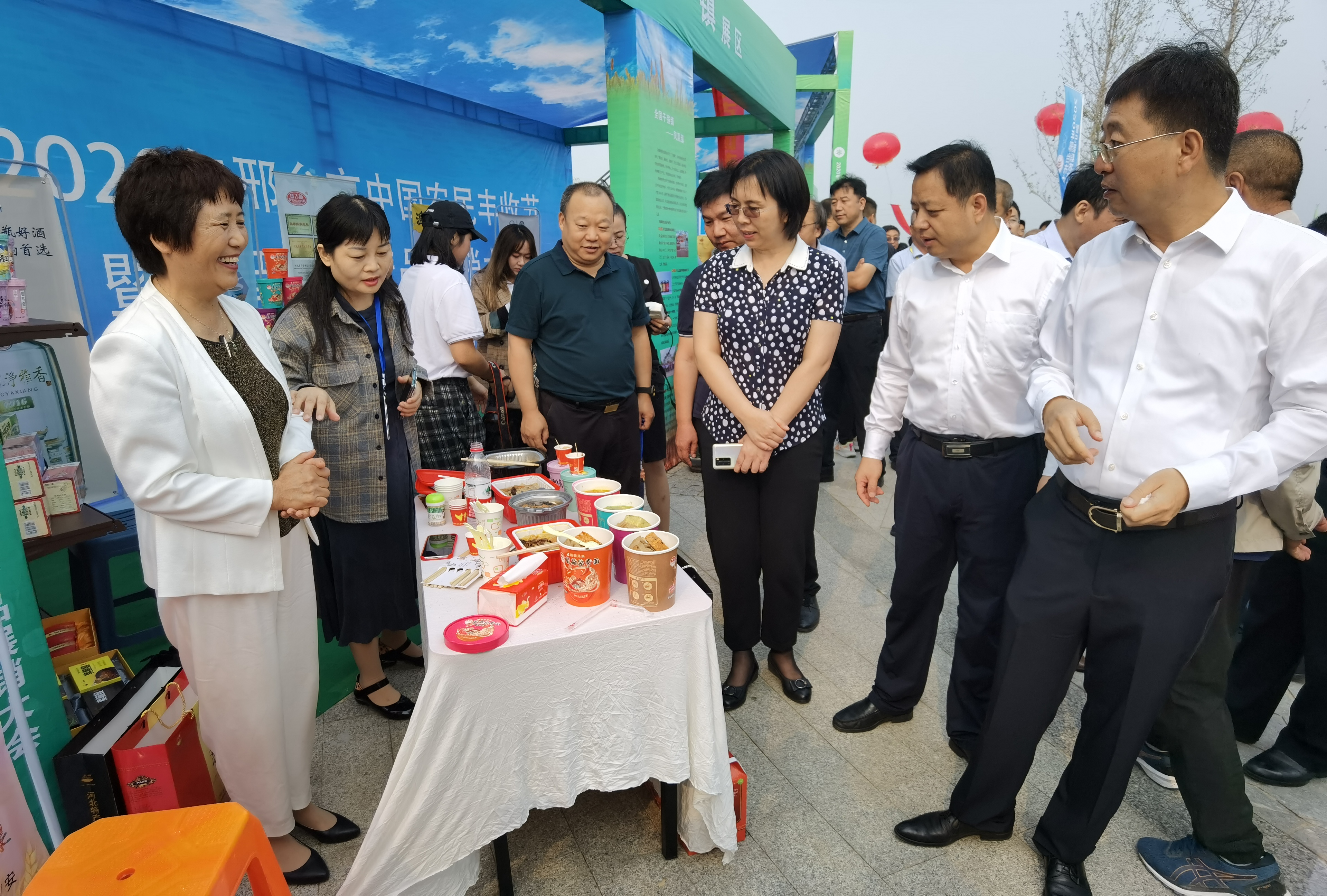 此次活动时间为2020年9月22日、23日两天。当天的展销活动现场,熙熙攘攘的老百姓在观看特色农产品展示的同时尽情地享受着舌尖上的美味,谈笑丰收事,“这虫草汤太好喝了,再给我一碗。”“这薯片在哪能买到?”“这么好吃的哈密瓜是咱们这儿种出来的吗?比新疆的一点也不差!”等等。参观者中有人专门带孩子过来了解自己县里的特色农产品,增长知识,还有赶路几十里地专程过来参观的农民,看看自己县里其他乡镇的好东西。大家喜笑颜开,现场热闹非凡。
