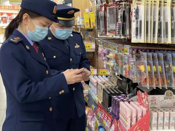 执法人员对校园周边的超市、便利店、文具店等市场主体进行全面排查,以文具、各类盲盒、“3C”认证玩具为重要品类,严格检查经营者的进货查验及票据留存情况,并对店内在售商品进行详细甄别。要求各经营主体坚决落实主体责任,严禁销售假冒伪劣、“傍名牌”“蹭热度”、侵权、伪造冒用包装标识的文具、玩具、盲盒等商品。