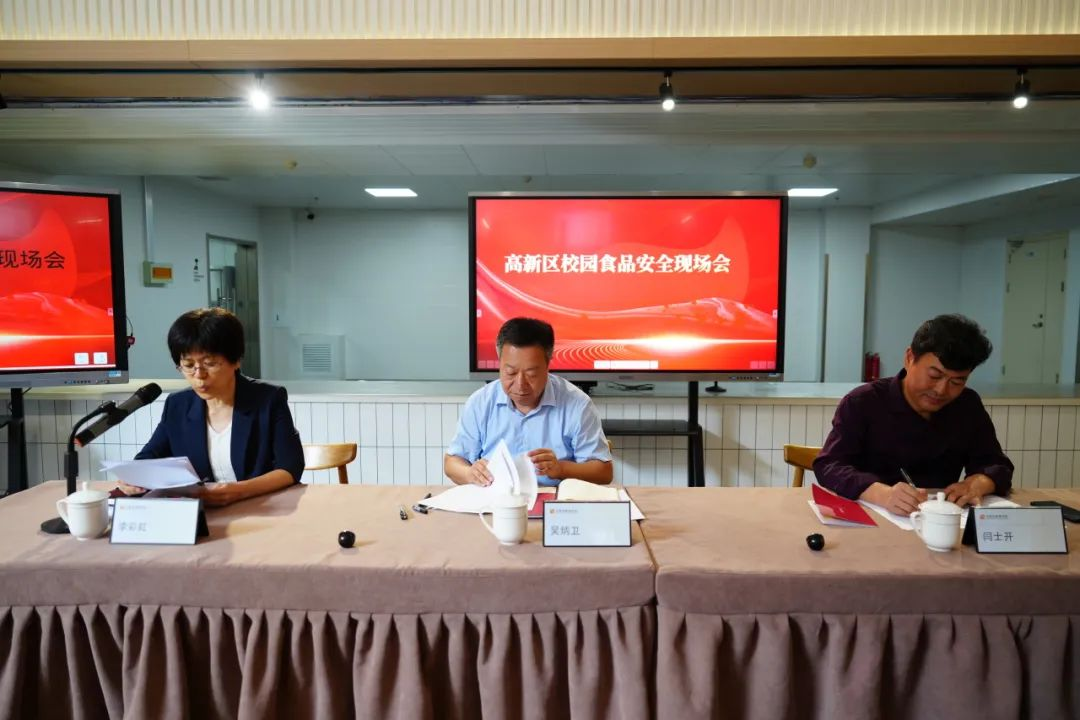 瀚林学校校长苏永军、高新区市场监管局分管领导、区文教局分管领导、全区学校主管食品安全的副校长、各市场监管所所长共计100余人参加了会议。