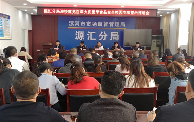 源汇分局迎接建党百年大庆夏季食品安全校园专项整治推进会会议现场