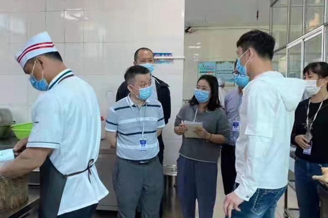 执法人员对学校食堂进行检查