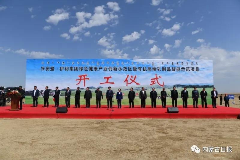 5月1日,兴安盟•伊利集团绿色健康产业创新示范区暨有机高端乳制品智能示范项目在兴安盟农牧场管理局呼和马场开工。内蒙古自治区党委副书记、自治区主席布小林出席并宣布项目开工。