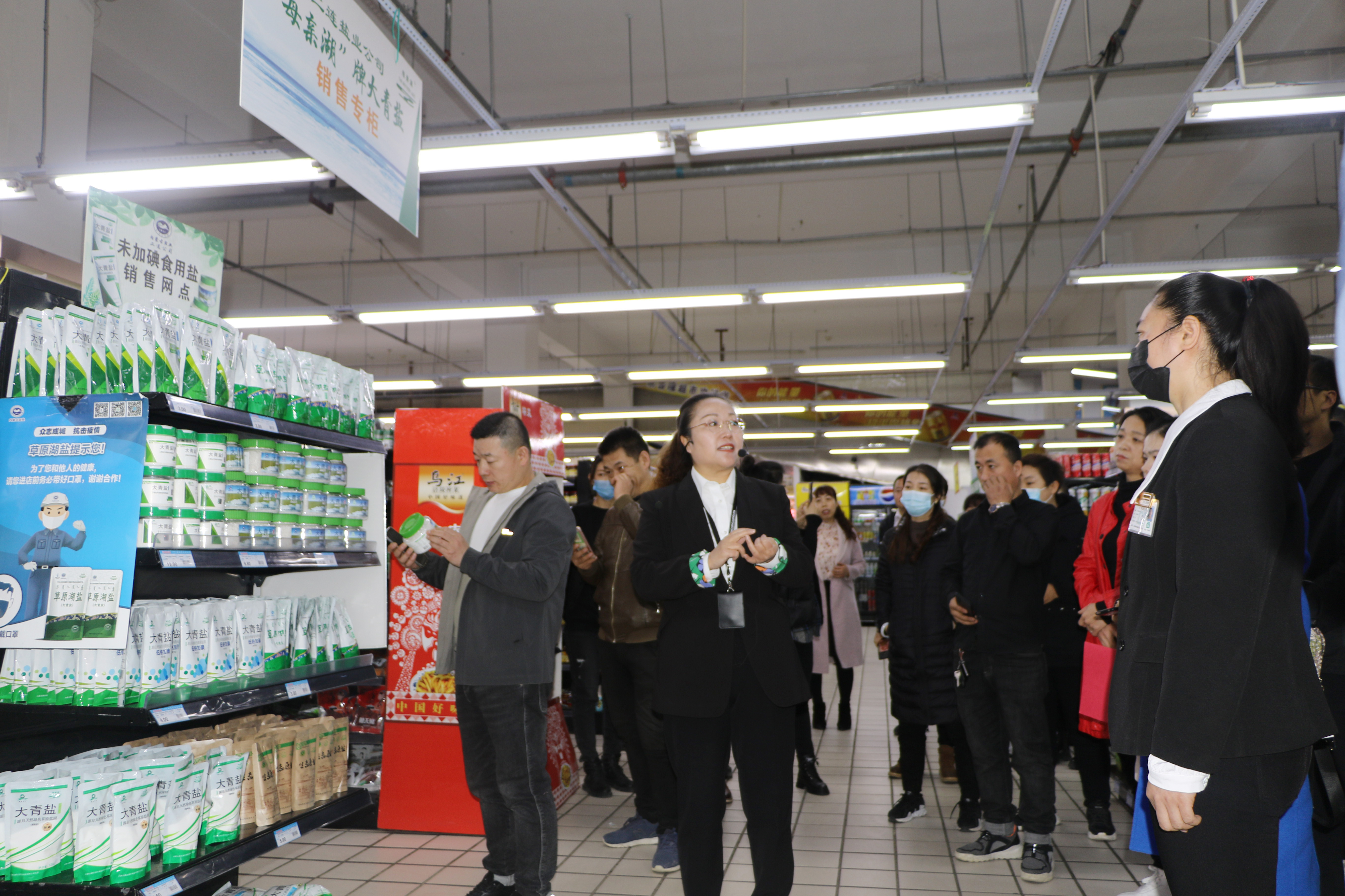 与会人员在蒙客隆超市对食品经营过程中具体规范操作进行观摩学习