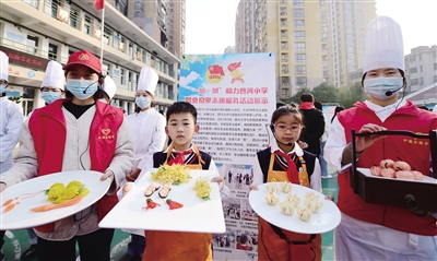 近日,在安徽省合肥市四河小学,职业体验社团学生展示自己制作的曲奇饼干。当日,合肥市少先队“红领巾心向党 快乐筑梦共成长”主题品牌展示活动暨合肥市少先队名师工作室区域共建研讨交流在四河小学举行。活动展示了在“双减”政策之下学校全面加强新时代少先队工作,助力学生全面发展。
